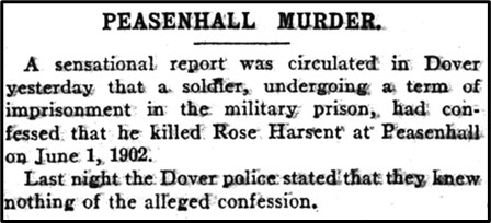 Sometime after the trials a report (above) appeared stating that a soldier in the military prison in Dover confessed to Rose’s murder. The police denied all knowledge of this and nothing further was heard of it.