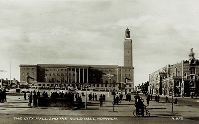 The City Hall and the Guild Hall, Norwich - postmark 31 Aug 1939